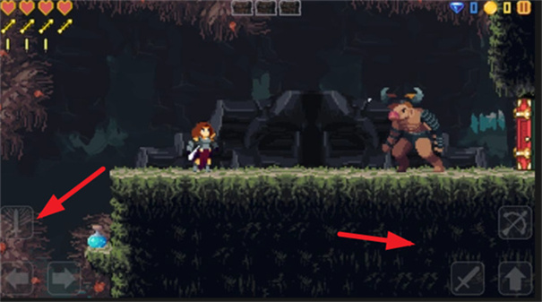 1、左下角的按键控制角色移动,右侧的则是攻击,跳跃等按键,记得灵活使用。