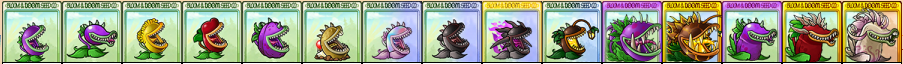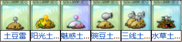 普通植物:雪棘草、指向标、蒜毒树桩、海窝瓜、仙人掌大喷菇、魅惑火炬树桩、水草大蘑菇、火爆卷心菜投手、毁灭卷心菜投手、火爆玉米投手、寒冰土豆雷