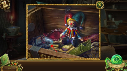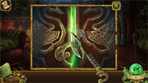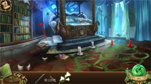 10、在皇后的房间里,床的左边墙上拿到一根熄灭的火炬,右边窗台获得一根钩子,从皇后的手中获得一个绿色的徽章。