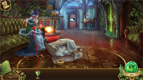 7、拿着冷静剂回到客厅,皇后的继母坐在沙发上,我们点击皇后的卧室,会有一段剧情,之后门被锁住了,皇后的继母显然受到了惊吓,我们把冷静剂给她。