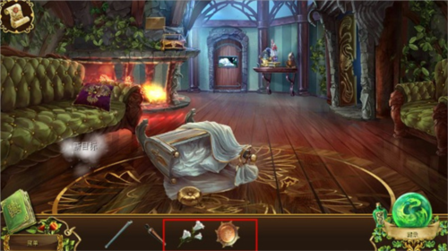 1、开始会有一段动画,看完我们可以得知故事剧情,皇后无法说话,但是不知道是得了什么病,需要检查,接着我们来到了客房,在房间里,首先我们可以在地上拿到一个草药行李箱,角落的柱子上我们可以得到一个医师符咒,整个游戏总共有31个医师符咒,算是隐藏物品吧,不点也没什么影响的。