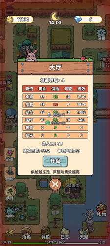 声望,通过发展长夜镇获得。通过大厅可以看到,人口和声望达到要求可以升级爵位 。