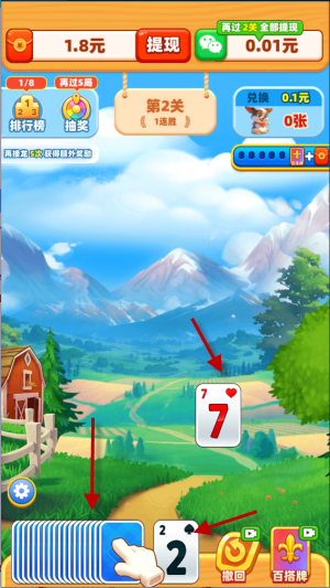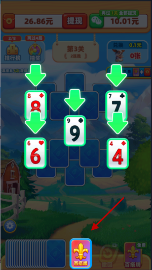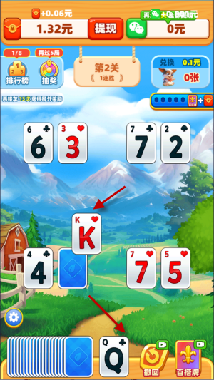 5、除了发牌之外,还可以利用百搭牌破局,百搭牌用了之后,任意牌都能直接点击。