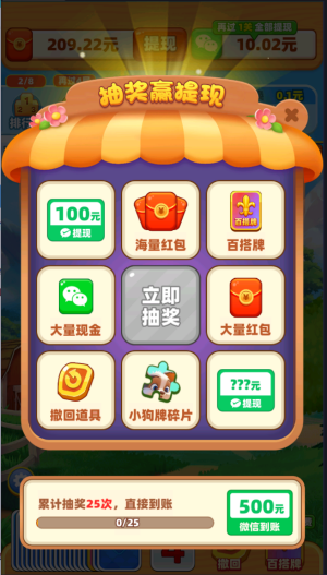 7、完成一定关数就可以抽奖,有几率抽到红包大奖。