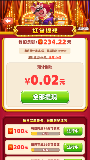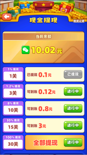 9、另一种则是更具你闯关的数量来提现。