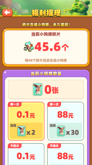 6、小狗碎片可以兑换0.1元的红包。