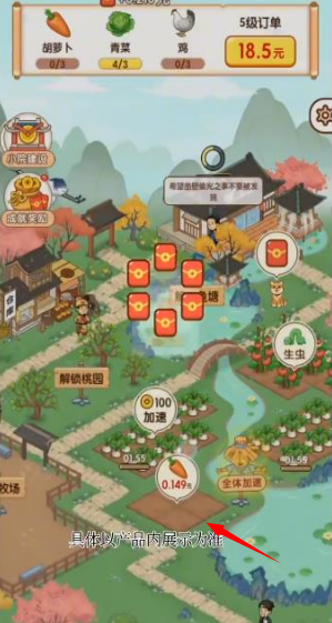 2、有各种瓜果蔬菜可以选择去种植,种植的作物不同完成的订单任务是不一样的。