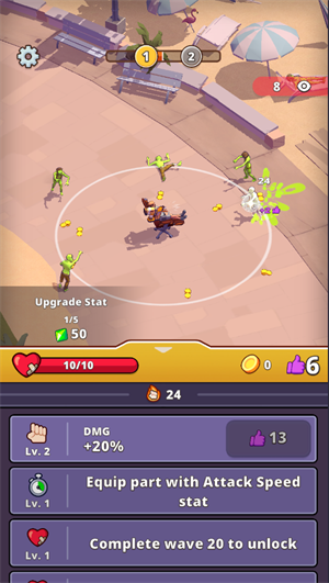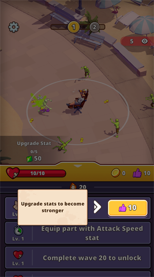 4、令人肾上腺素激增的挂机战斗:面对一波又一波的僵尸,每一波僵尸都会在一场史诗般的首领战斗中达到高c。随着游戏的进行,您将在各种地点进行直播,例如迈阿密南海滩、美国购物中心、废弃的贫民窟等等。