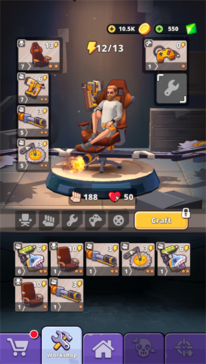 3、升级你的闲置扶手椅:从一个只有一个枪槽的简单凳子开始。直播并获得订阅者,他们将使您有机会升级您的扶手椅及其枪z,将其变成战场上对抗僵尸的强大机甲。