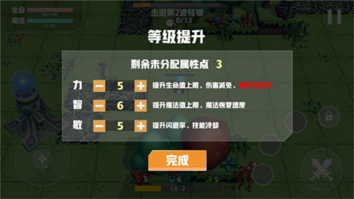 4、每次击败一波敌人后就会出现对应的等级提升,还有待分配的属性点。