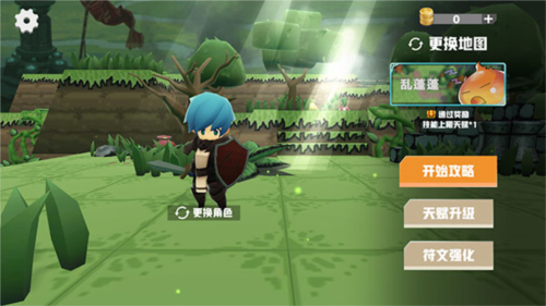 1、在本站下载安装好香椿勇者手游后,进入后首先选择角色的职业和地图,点击“开始攻略”。