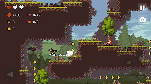 5、按着右下角的向上键即能够跳跃起来,连按两下跳的更高,收集到的苹果和金币都会在左上角显示,收集到全部的东西才能完美过关。