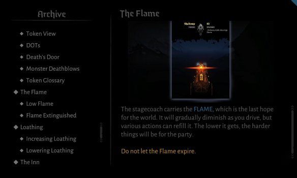 马车携带着“火”,这是世界最后的希望,他会在你行进时逐渐缩减。但是有些行动可以重新填装它。当它变暗淡时,整个队伍会面临更艰难的情况,不要让火焰消逝。