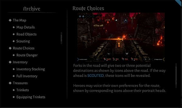 路上的分岔口会给出两种或者三种可能的选择方向,会通过标记展现在对应的道路上,如果道路侦察过,标记就会被展示为目标的标记,当你走上一条路时,这条路的终点是什么也会被在你的地图上标记出来。