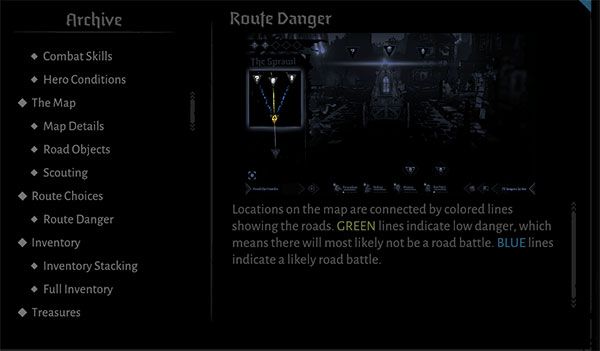 路上的危险:地图上的地点被彩色的连线连接,绿色的线表示没有危险,也就是说大概率没有拦路战斗。蓝色的线则意味着可能有拦路战斗。