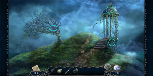5、来到悬崖边用刀割下凉亭下面的「藤蔓」,再点击上方的标记达成4/22成就【侦探】。接着组合藤蔓和磁铁,然后用磁铁拿到悬崖底下的「钥匙」。