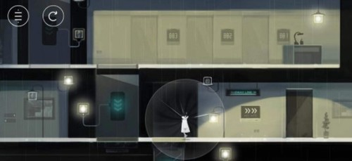 接着往右走一点吸收灯光,往左走来到升降踏板处,把旁边的灯光吸收了,吸收完之后传递给升降踏板的开关并且迅速移动到踏板上。(如果在踏板下降的时候我们的人物没有在上方,那就要重新再来一次,导致无法拿到S级评价)