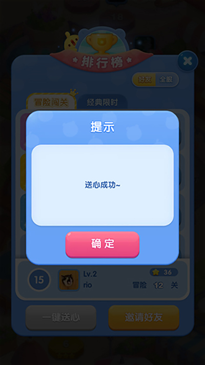3、最后就会显示送心成功的弹窗啦。