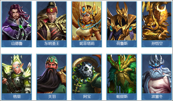 阵容搭配方案二:关羽、波塞冬、埃及艳后、财神、阿努比斯