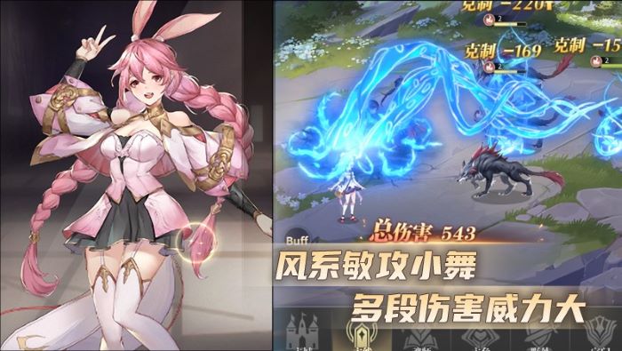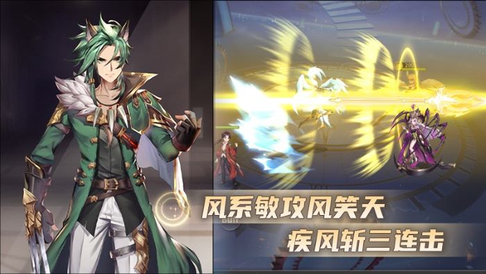 风笑天的一技能可以攻击敌人前排,同时获得2层疾风印记;二技能在叠满3层疾风印记之后可以释放疾风连斩,对单个敌人进行三连击。