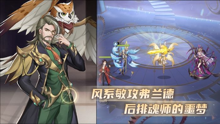 弗兰德一技能可以攻击敌人的中后排魂师,二技能可以单体攻击,四技能可以锁定敌人最高攻击目标附加看破标记,被精准打击时可以概率降控。