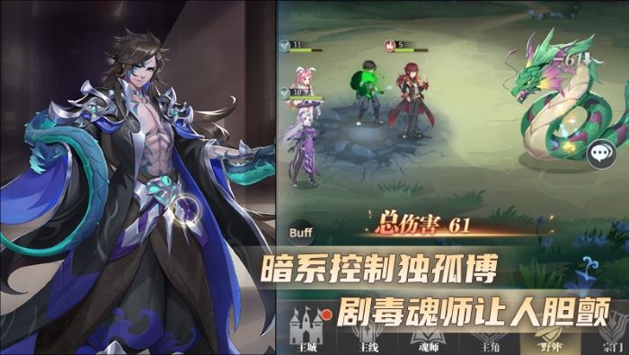 四、战斗系统,采用1主角+6魂师模式,结合自选站位阵法,真实还原小说中7人团战。在这里,你可以灵活的制定自己的战术,利用属性克制与技能搭配,利用自己的天赋领域与唐门暗器,扬长避短,以弱胜强。