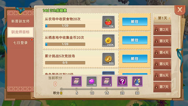 3、完成驯龙师目标,14天之内根据引导完成对应任务走上优秀驯龙师之路吧!