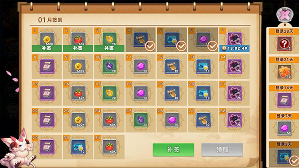 4、月签到礼包,记得每天上线看看你的龙岛,到达一定天数还有额外小礼物可以领取哟。