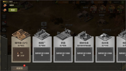 玩家可以通过基地建设提升经验等级,以推进游戏进程。点击建造按钮即可进入~