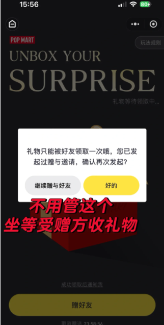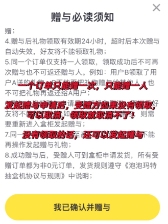1,打开泡泡玛特app,找到要转赠的商品,点击右下角的赠与好友;