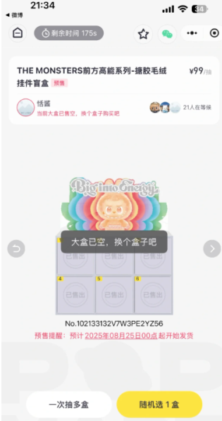 3)即便你在排的大盒其实已经售空,系统有延迟,会慢慢地磨你的时间让你以为你有机会买到。