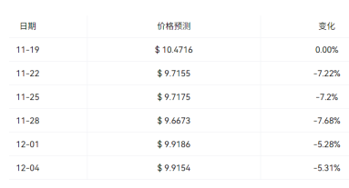 根据我们目前的Bounce Token 价格预测,到2025-12-04,AUCTION 代币的价格预计将上涨-5.31%,达到9.9154 美元。