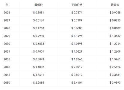 从长远来看,稳健的基本面最终可能会推动ENA 价格上涨,并最终在2050 年达到最高$ 3.9893。