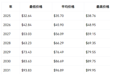 与此同时,Bitnation 声称该加密货币今年最高价格可能为38.76 美元,最低价格为32.64 美元。以下为该网站Avalanche 代币2025-2030 年的长期价格预测表: