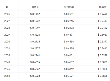 预计LRC 在2026 年将达到最高0.2692 美元。到2030 年,LRC 币平均价格为0.4554 美元。以下为该代币未来详细的预测数据: