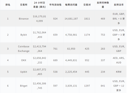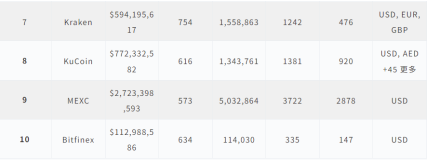 以下是根据加密货币数据网站CoinMarketCap针对各方数据判断,所统计出来的全球前 10 大现货加密货币交易所