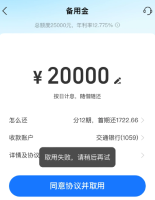 取用过程中有综合评估过程,可能存在取用失败的情况。