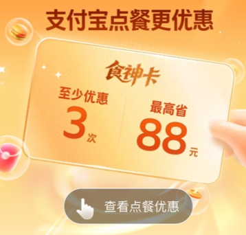 近日不少小伙伴发现自己自扫码点餐的时候会有食神卡点餐的优惠,不清楚这个食神卡是哪里看来的,会不会收费呢?下面就和小编一起来看看支付宝食神卡的相关信息。