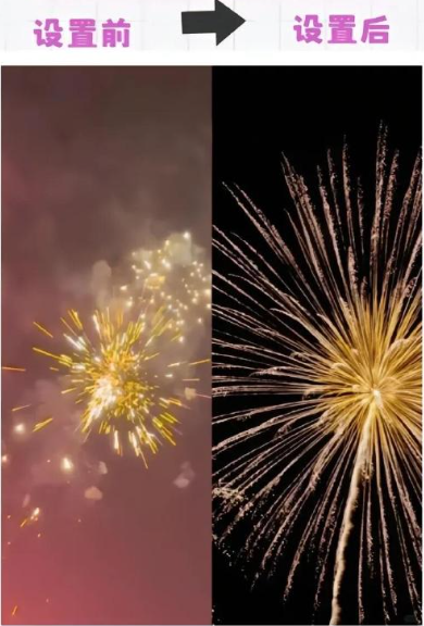 5,下拉小太阳,降低曝光值,让烟花更清晰;