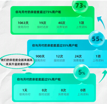 月付亲密度是DOUYIN月付额度评定的重要指标亲密度会随着使用天数、按时还款、消费笔数、上传资料的逐步增加而增长