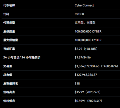 2023年4月28日,CyberConnect宣布推出原生TokenCYBER,并于5月18日于CoinList启动公开发行。