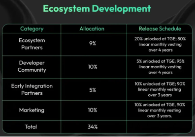 早期集成合作方:5%,上线后解锁10%,90%在3年内解锁;