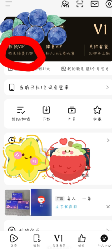 2.进入个人中心后,点击头像下方的视频VIP