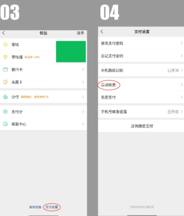 找服务–钱包–支付设置(最底下小小字)–自动续费