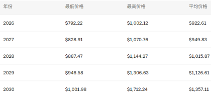 随着币安在加密领域保持强势地位,币安币(BNB)预计将在2026年出现增长。对于快速、低成本区块链的需求可能会助力BSC在DeFi和NFT领域的领导地位,提升其价值。随着更多用户和开发者加入平台,BNB在这些领域的角色可能支持其发展。尽管市场变化,币安的增长和区块链的采用预计将使其在2026年保持强劲表现。我们预计BNB的价格将在$792.22到$1,002.12之间波动。