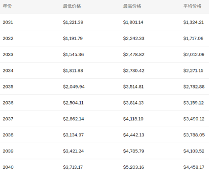 展望2040年,如果币安保持其市场主导地位,BNB可能会经历强劲的增长。只要币安继续支持网络,BNB可能会增值。全球范围内的区块链采用、低成本交易以及新的监管政策将会影响其未来。在这些因素的推动下,币安币可能会大幅增长。到2040年,BNB有可能达到$5,203.16。