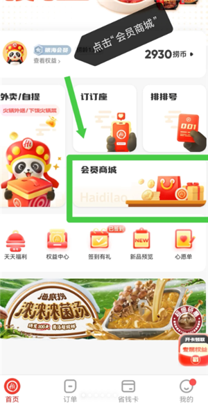 打开海底捞小程序-我的-捞币