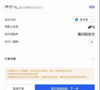 确定好后点击“购买USDT”按钮,进入下一个“订单支付”页面。