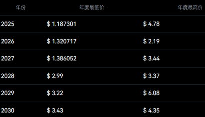 而Coincodex根据StargateFinance的历史价格走势和BTC减半周期,得出Stargate代币在2030年之前的价格预测分别为: