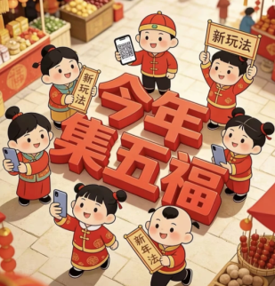 奖励机制:合成五福卡后立即获得开奖资格,除夕夜瓜分现金红包,奖励规模较往年